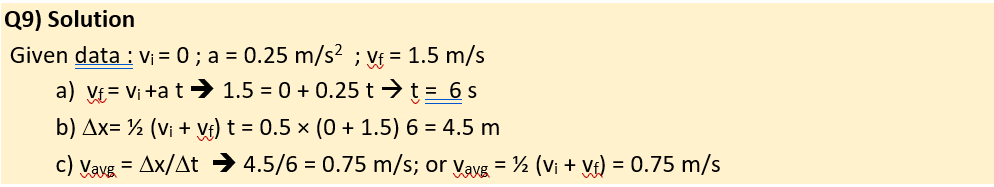 Q9) A rehabilitation patient starts walking from rest with a constant acceleration of 0.25 m/s².