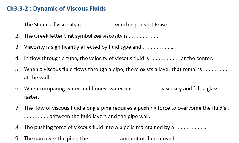 Back to Chapter3 : Fluid Dynamic and Circulatory