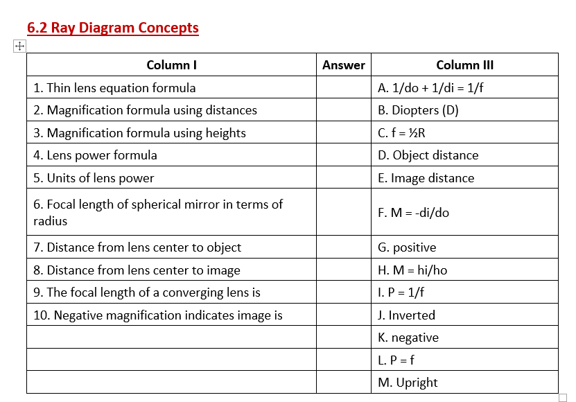 Back to Chapter6 : Optics and Vision